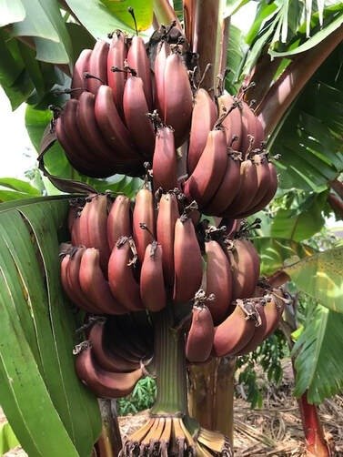 La banana roja (Musa acuminata 'Red Dacca') es una variedad de banano exótica que destaca por su vibrante cáscara de color rojo púrpura o granate. Originaria del sudeste asiático, es muy apreciada por su sabor dulce y su textura cremosa, que la distinguen de la banana amarilla común (Cavendish).