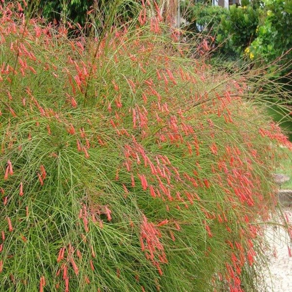 Planta LLUVIA DE FUEGO (Russelia equisetiformis) flor roja, en maceta de 4 Lts. Altura aprox. 80 cm